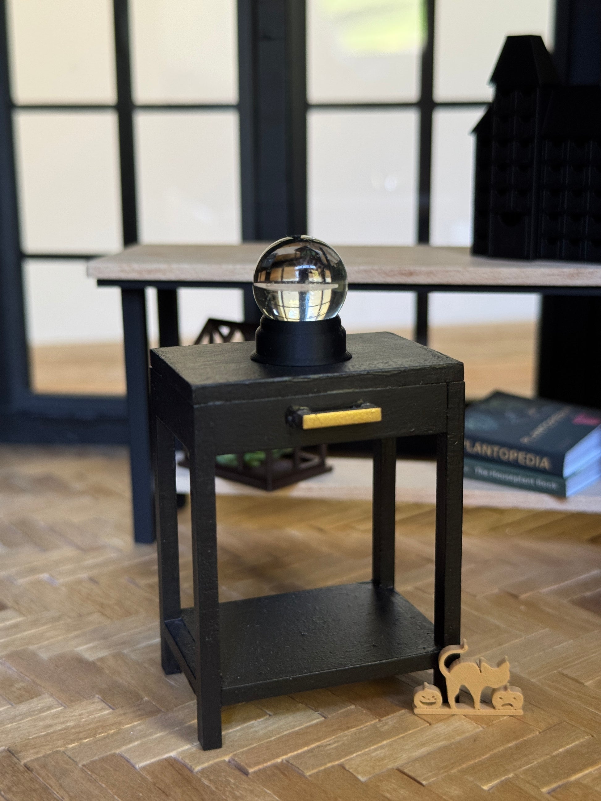In 1:12 scale - in real life this would be about an 8" crystal ball (without the base).
