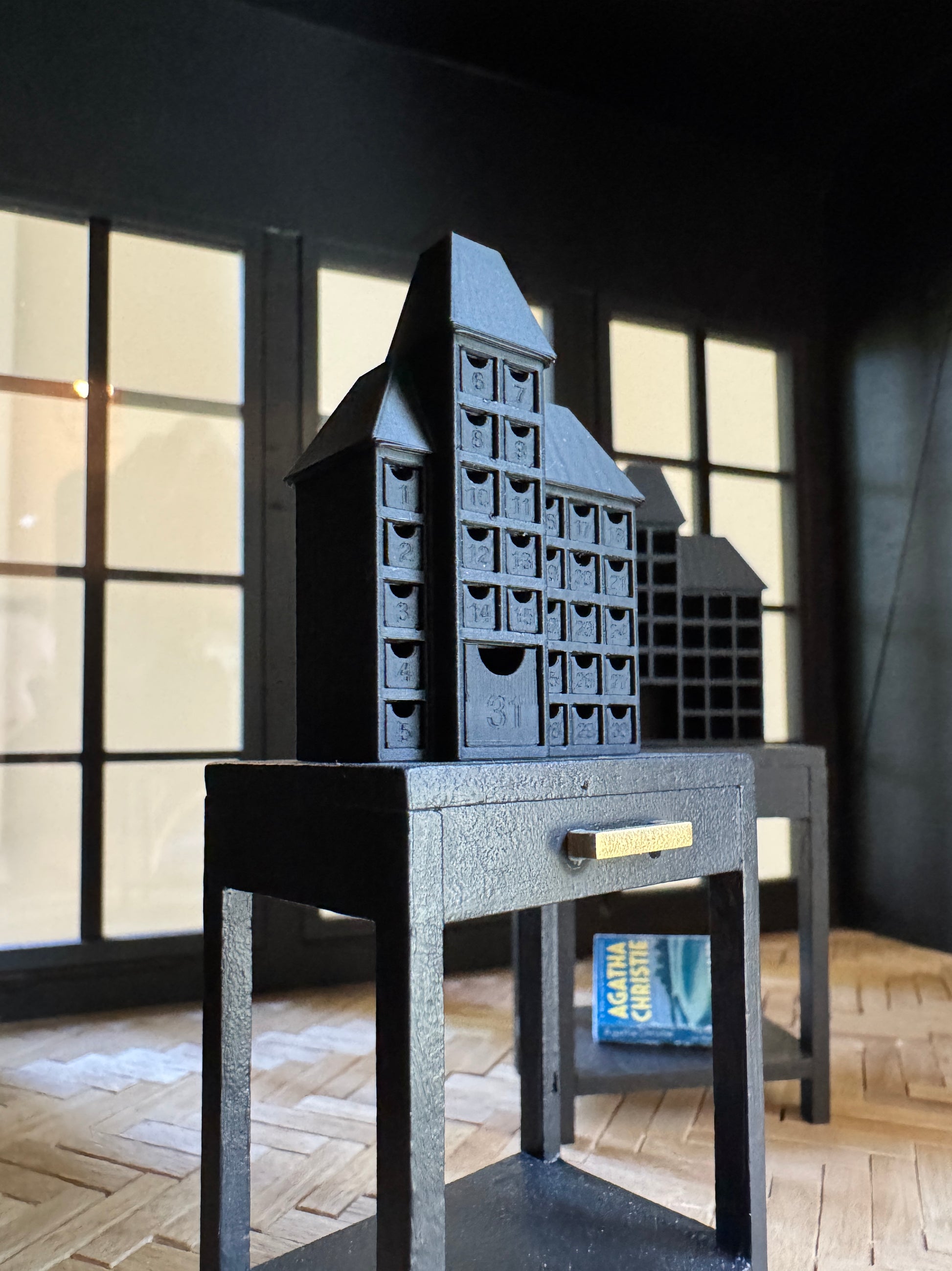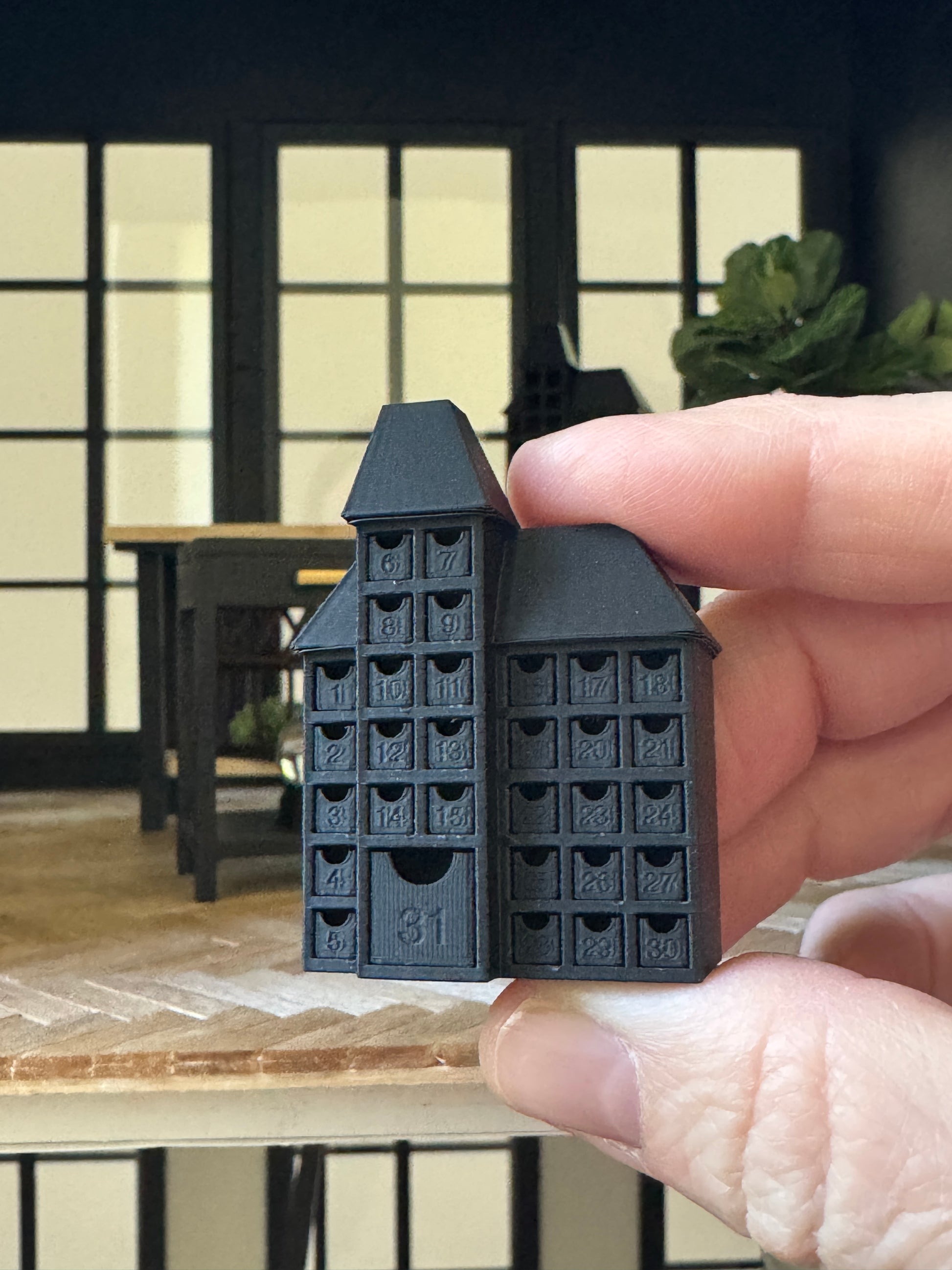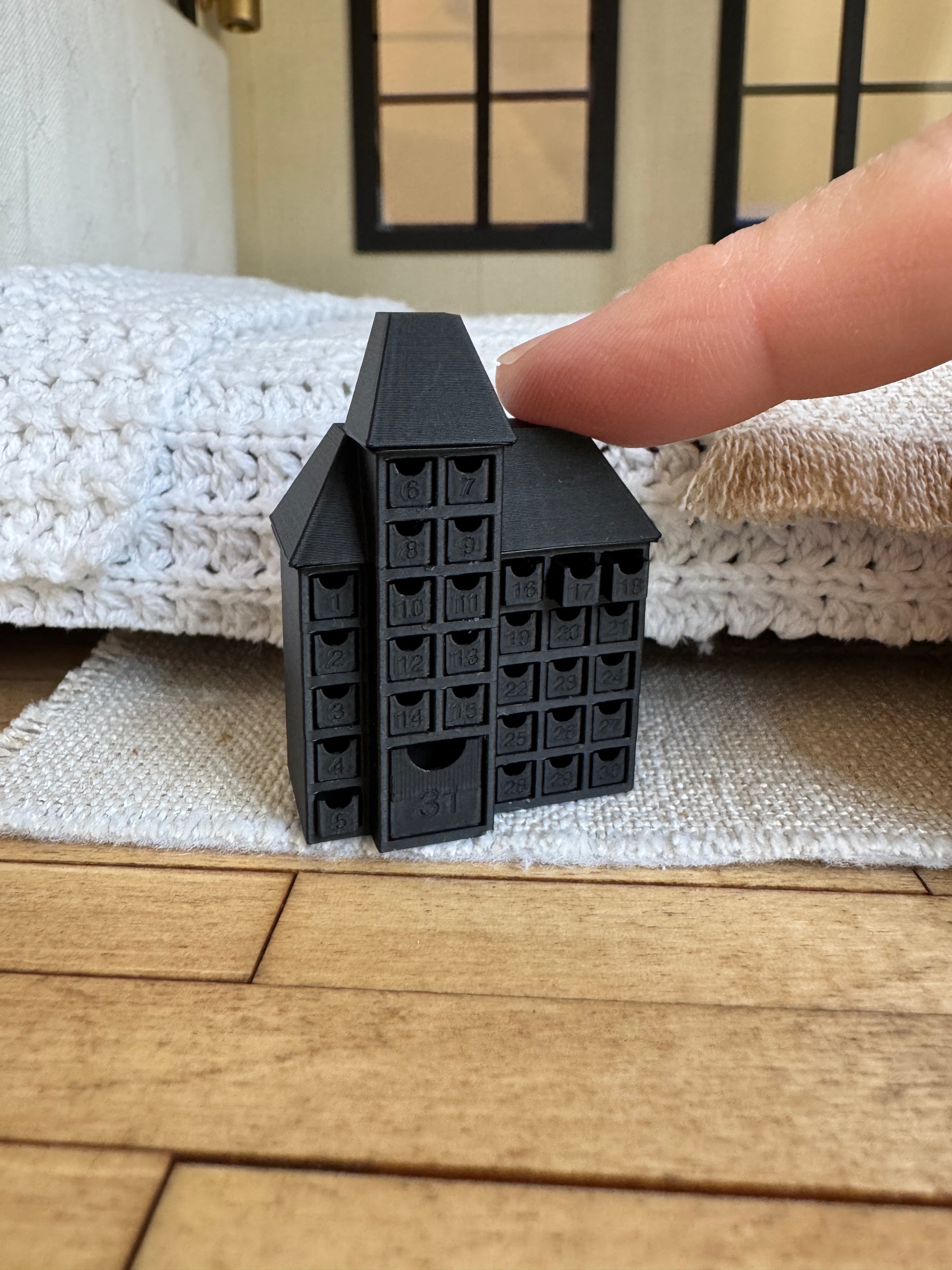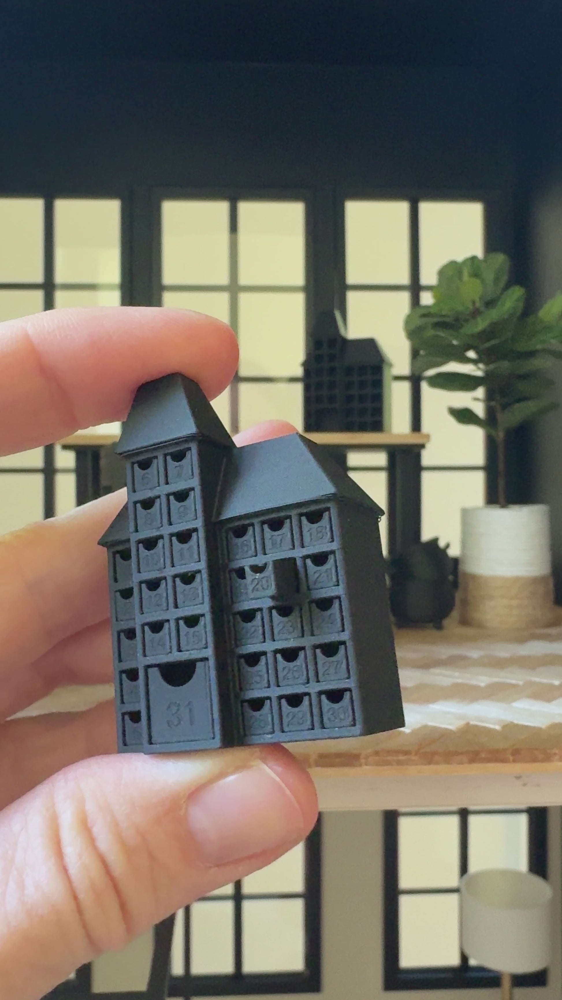 Add a truly fun addition to the spooky season with this countdown house! Each drawer slides out if you want to fill them with miniature candies.